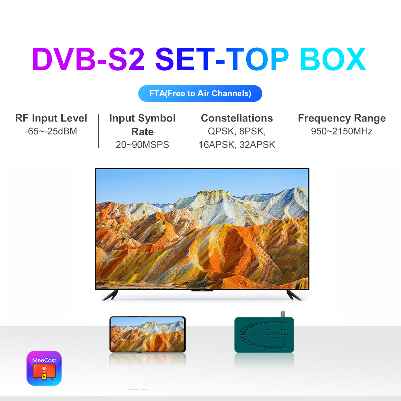 DVB-S2/S2X, FTA, HD, MeeCast, USB PVR, EPG, USB Wi-Fi, IPTV, Youtube, MeeTube, Tiktok, ਆਨਲਾਈਨ ਅੱਪਗ੍ਰੇਡਿੰਗ, CAS ਵਿਕਲਪਿਕ |
