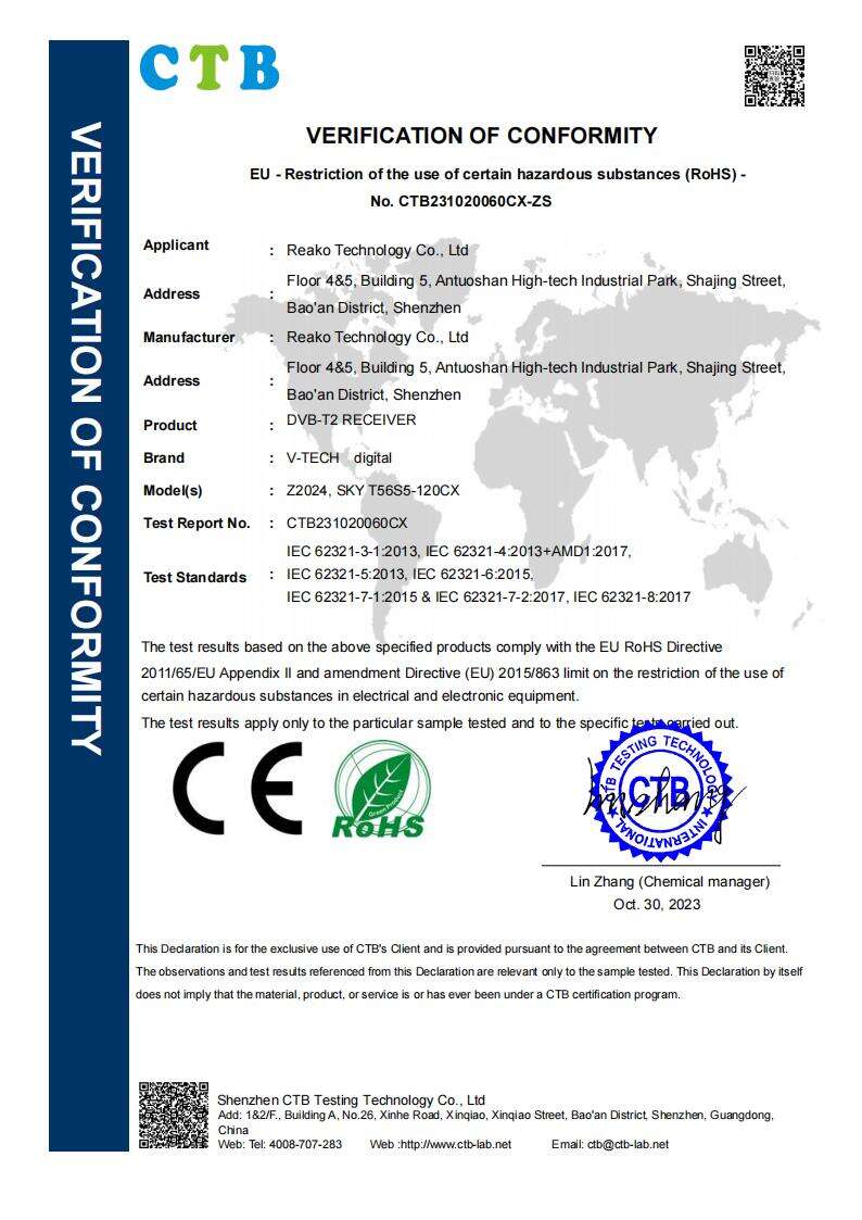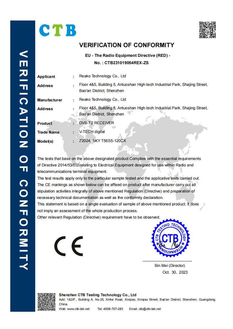 Reako Technology Co., LTD, założona w 2013 roku w Shenzhen, specjalizuje się w odbiornikach DVB, kamerach IP i elektrycznych szczotkach czyszczących. Nasza fabryka, wyposażona w 5 linii SMT o wysokiej prędkości, 5 automatycznych linii wtykowych i 10 inteligentnych linii montażowych, zapewnia roczną produkcję na poziomie 6 milionów jednostek. Nasz zespół składający się z ponad 100 doświadczonych pracowników posiada wiele patentów i praw autorskich do oprogramowania w produktach cyfrowych Audio&Video. Zobowiązani do globalnej cyfryzacji i inteligencji, nasze produkty zdobyły dobrą reputację zarówno w kraju, jak i za granicą. Reako rozszerzyło się na grupę firm, obejmując odbiorniki DVBT na rynek chiński, dekodery DVB/ATSC/ISDB na rynki zagraniczne, kamery IP i elektryczne szczotki czyszczące. Posiadamy certyfikaty ISO14001 i ISO9001, a nasze produkty sprzedawane są w całych Chinach i eksportowane do Europy, Azji, Ameryki, Ameryki Południowej i Afryki. Witamy zamówienia OEM i ODM oraz oferujemy wsparcie w zakresie obsługi klienta dla wymagań dotyczących zaopatrzenia.