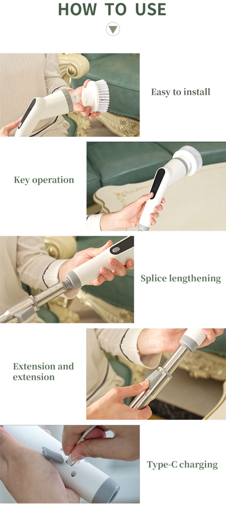 Wysokiej jakości biała elektryczna szczotka obrotowa do czyszczenia łazienki
