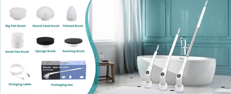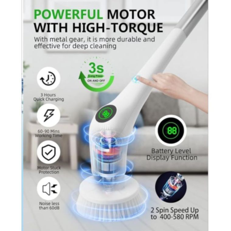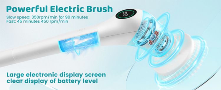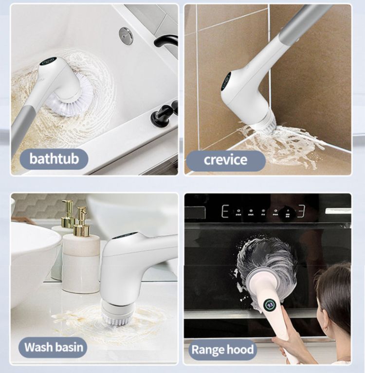 Popularny wodoodporny uchwyt do wirującego czyszczenia zlewu kuchennego Elektryczny wirujący szczotka z wyświetlaczem LED do czyszczenia ścian szklanych