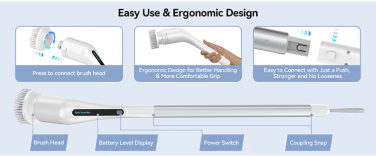Chińska fabryka Gospodarstwo domowe Akumulatorowy elektryczny wirujący szczotka Szczotka zasilana elektrycznie do czyszczenia płytek Wanien Powierzchni kuchennych Podłoga