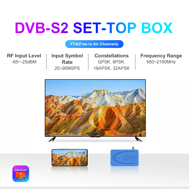 DVB-S2/S2X, FTA, HD, MeeCast, USB PVR, EPG, USB Wi-Fi, IPTV, Youtube, MeeTube, Tiktok, Aktualizacja online, CAS opcjonalnie