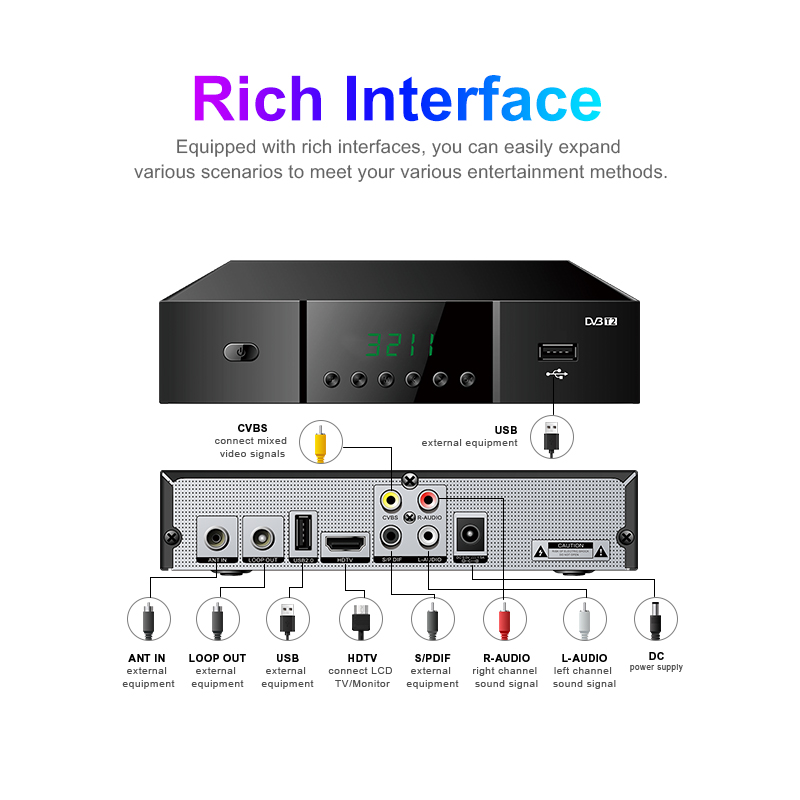 DVB-T2, FTA, HD, MeeCast, USB PVR, EPG, USB Wi-Fi, IPTV, Youtube, MeeTube, Tiktok, Aktualizacja online