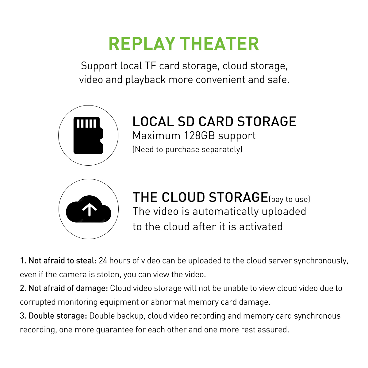WiFi 2,4 GHz Magazynowanie: karta TF do 128 GB / magazynowanie w chmurze |