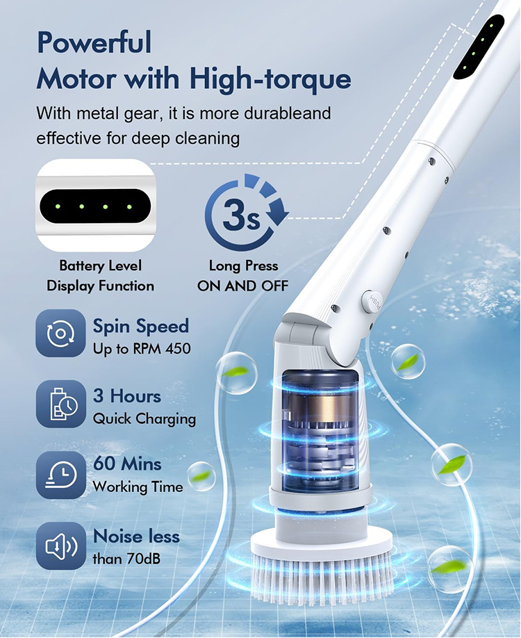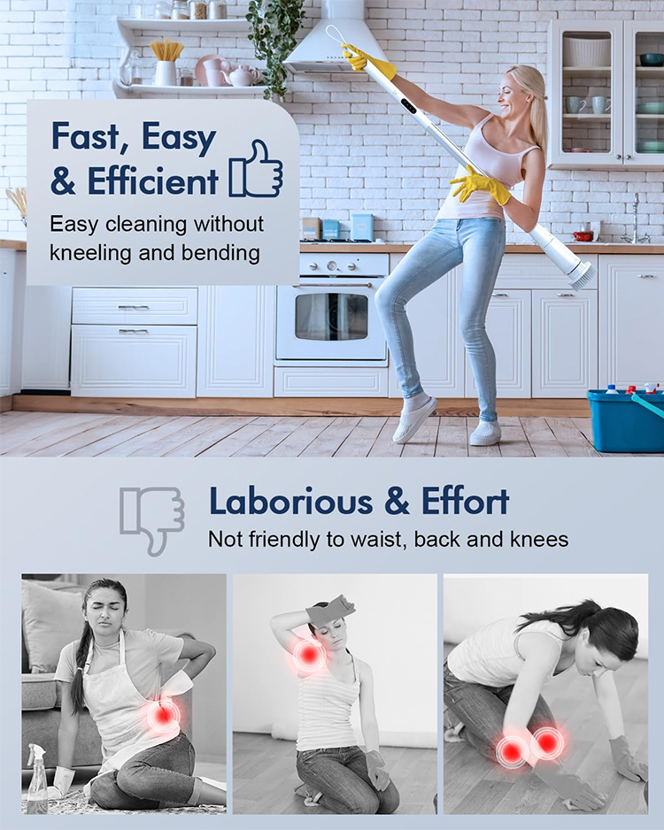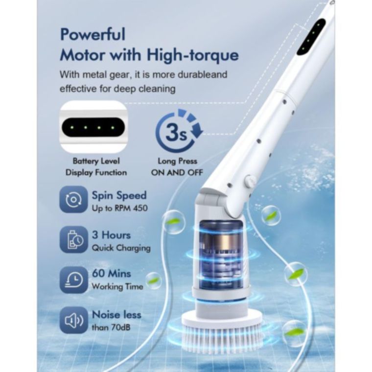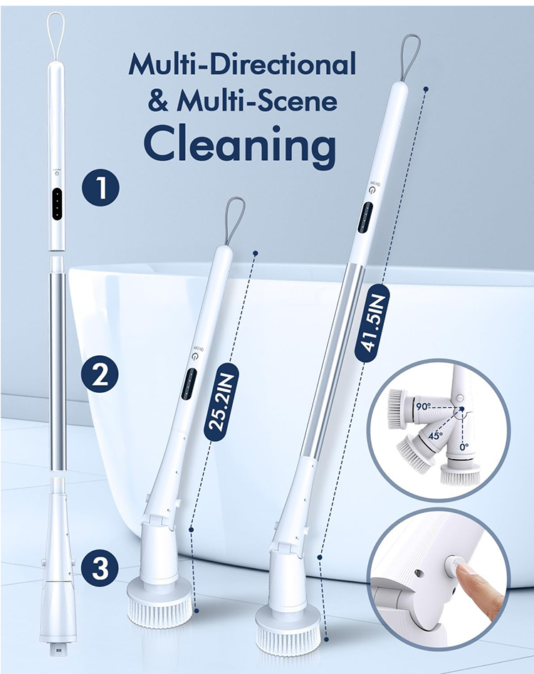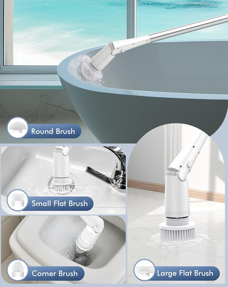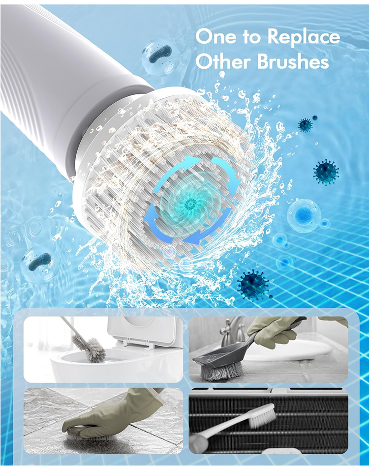 Dobra jakość bezprzewodowa elektryczna szczotka do szorowania, mocna obrotowa wymienna końcówka szczotki do efektywnego czyszczenia łazienki i kuchni